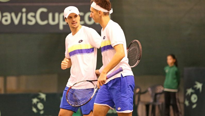 Украинцы Денис Молчанов и Сергей Стаховский приносят Украине первое очко в матче, победив в парном матче шведов Эрикссона и Сильестрёма: 7-6(4) 4-6 6-2