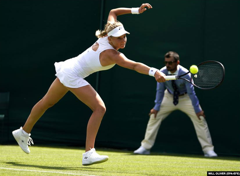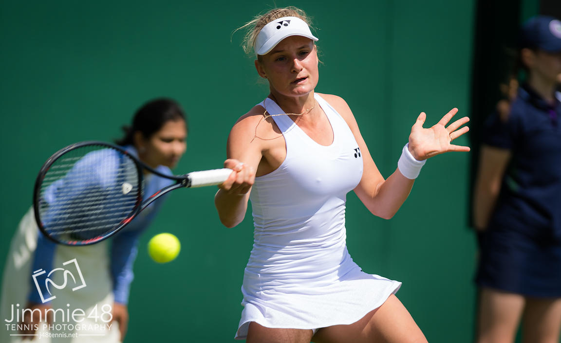 Dayana Yastremska of the Ukraine in action during the first round of the 2019 Wimbledon Championships Grand Slam Tennis Tournament