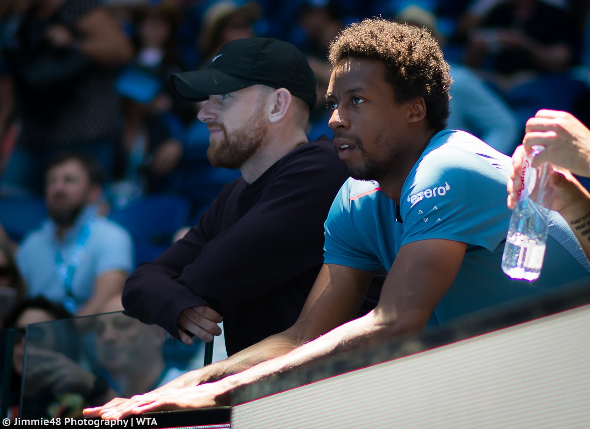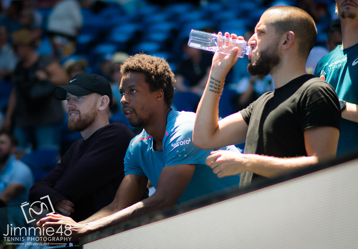 Gael Monfils watches girlfriend Elina Svitolina during her third-round match at the 2019 Australian Open Grand Slam tennis tournament