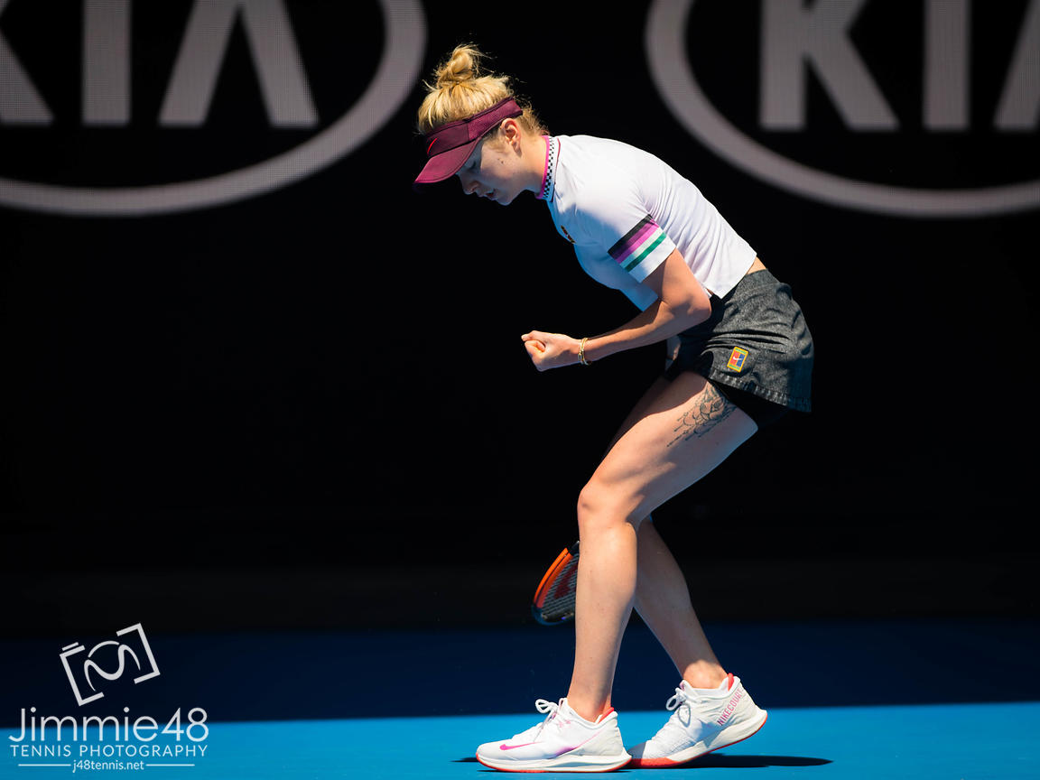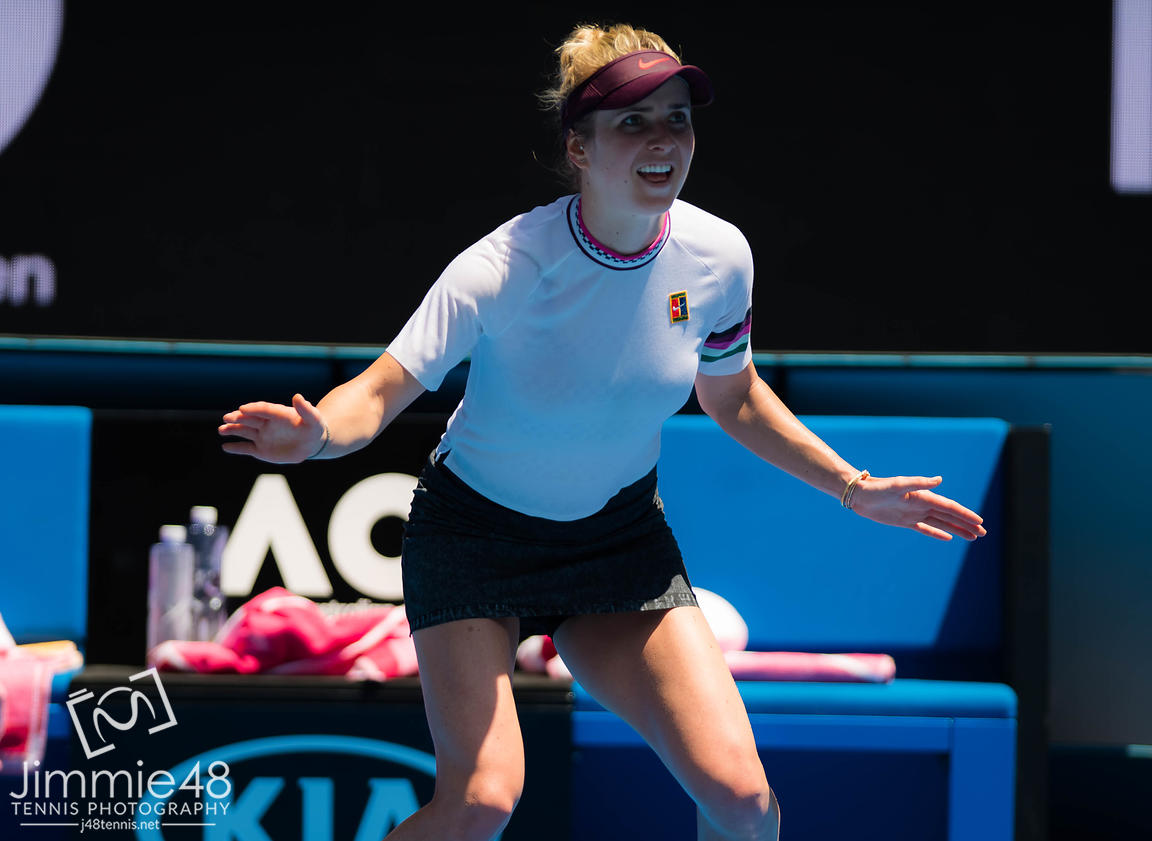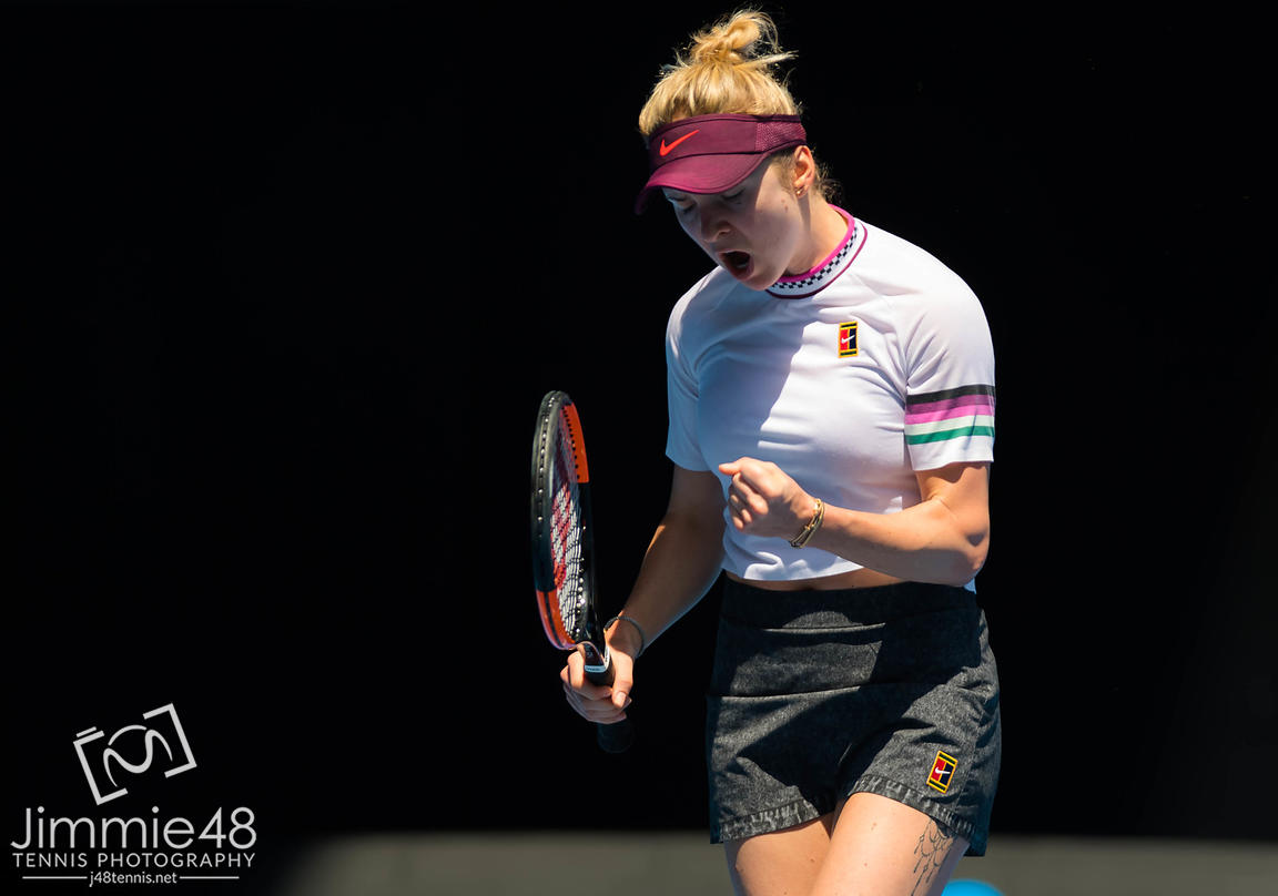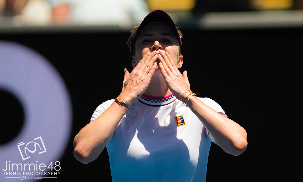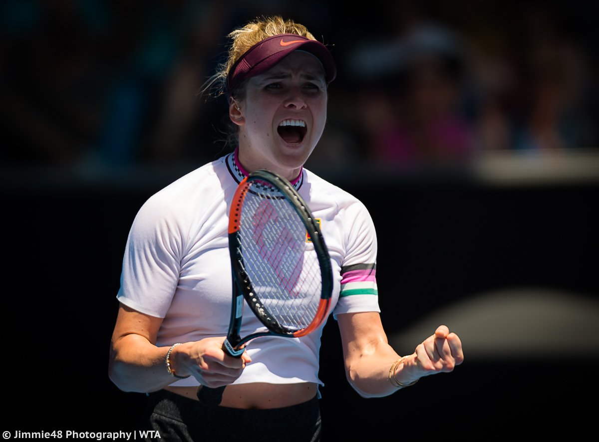 Elina Svitolina of the Ukraine celebrates winning her fourth-round match at the 2019 Australian Open Grand Slam tennis tournament