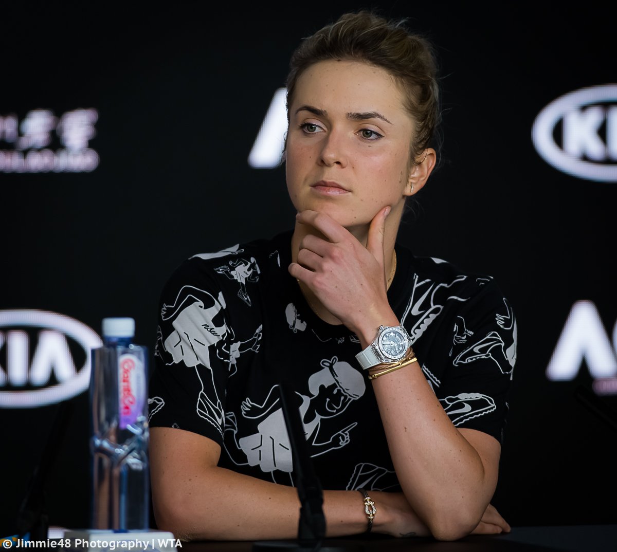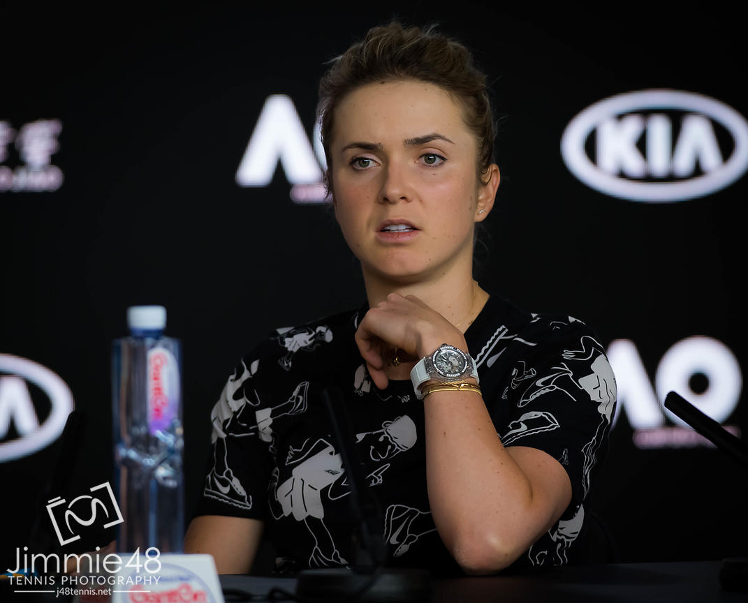 Elina Svitolina of the Ukraine talks to the media after her fourth-round match at the 2019 Australian Open Grand Slam tennis tournament
