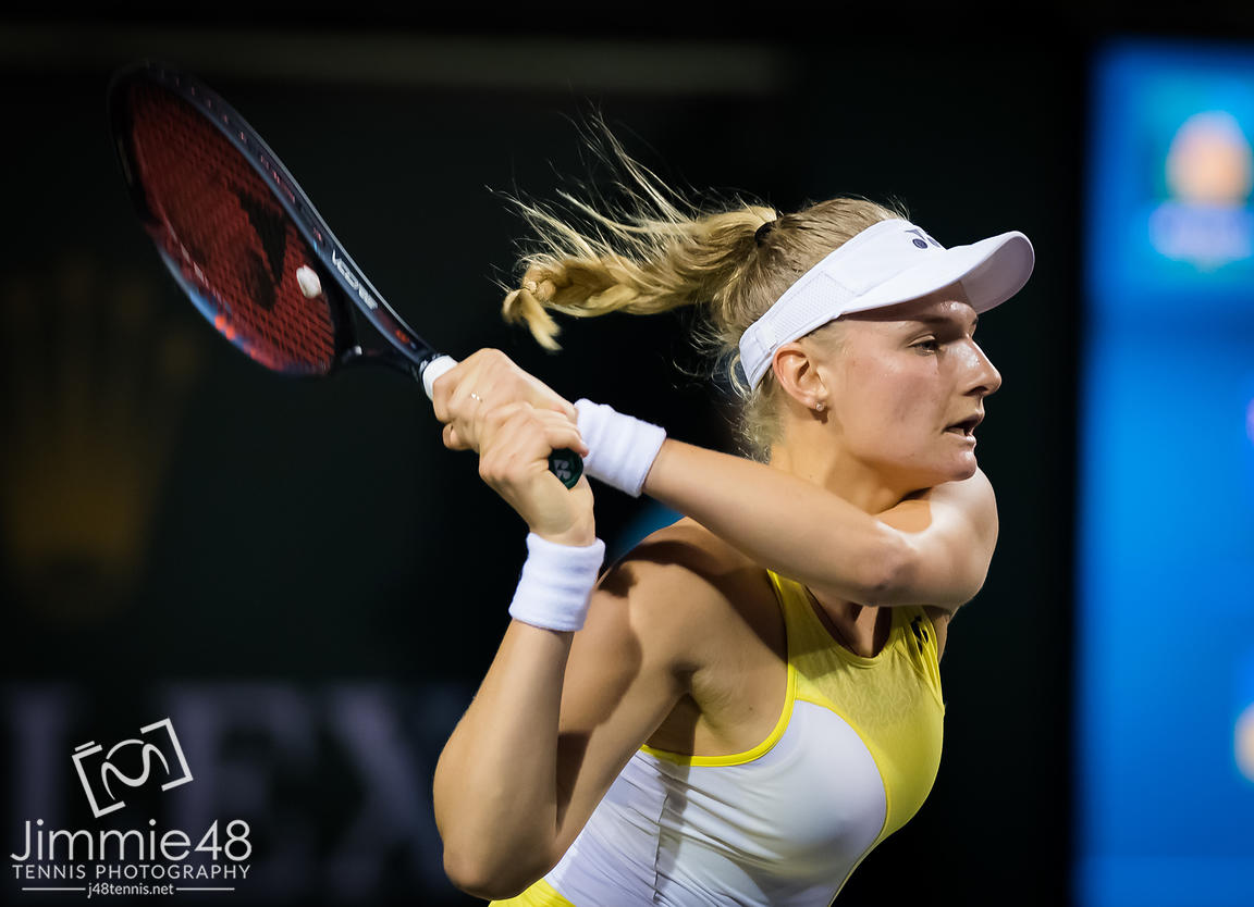 Dayana Yastremska of the Ukraine in action during the first round at the 2019 BNP Paribas Open WTA Premier Mandatory tennis tournament