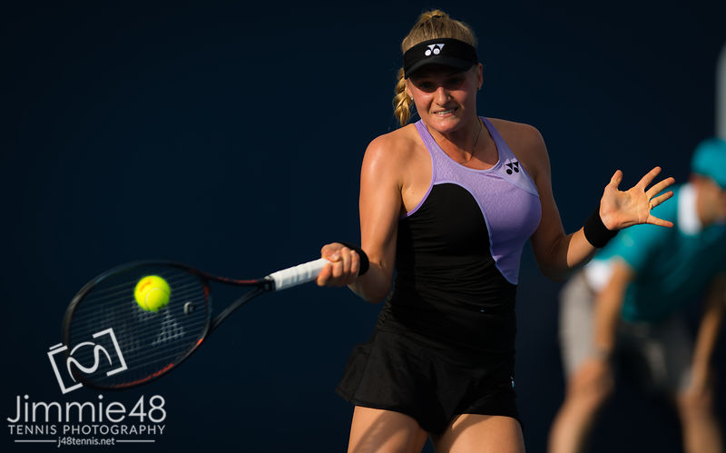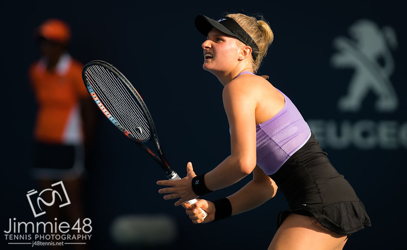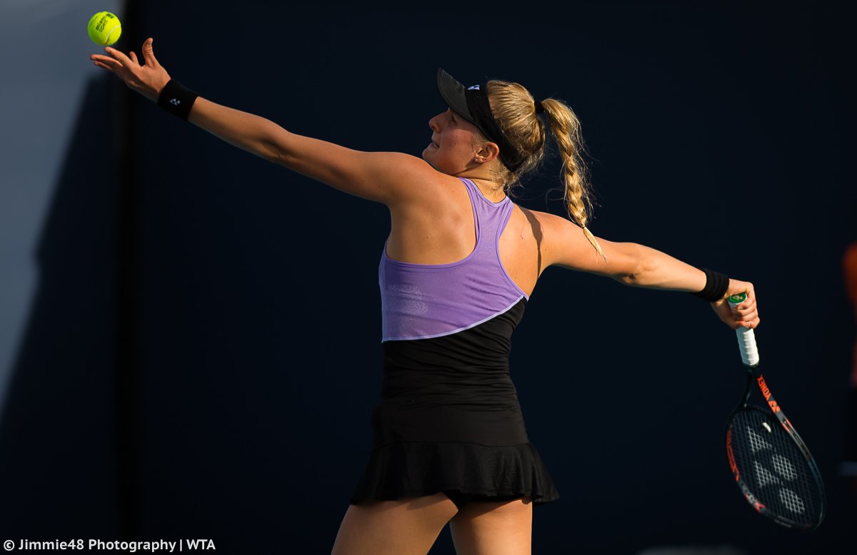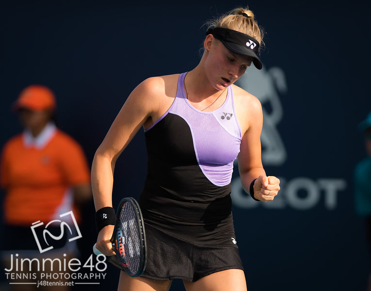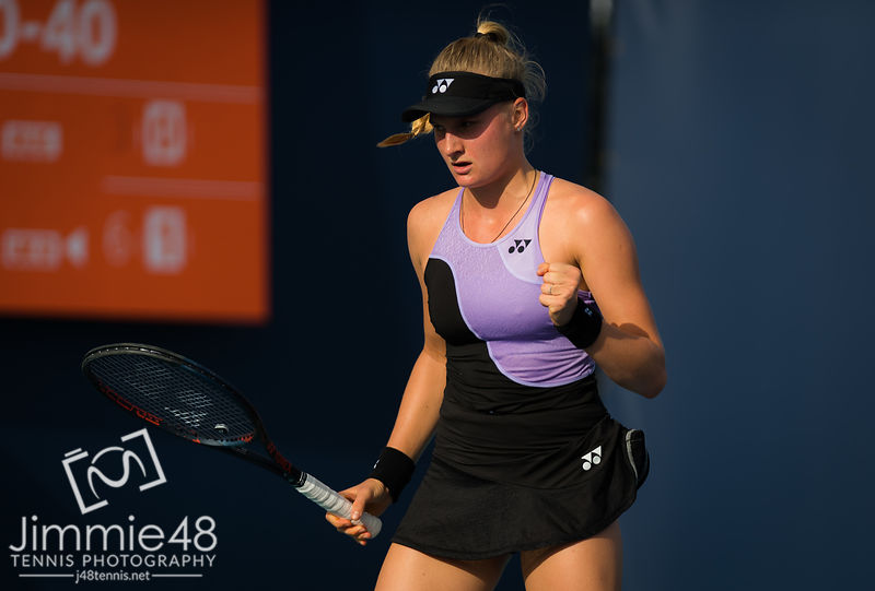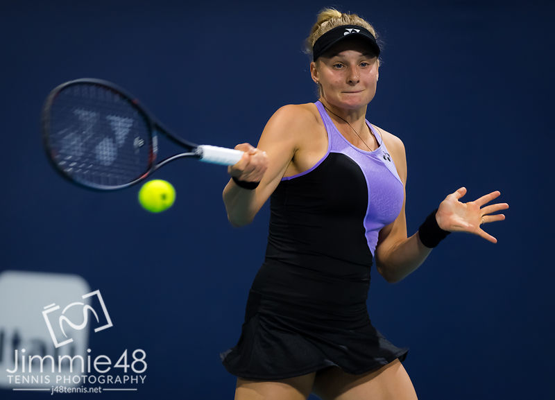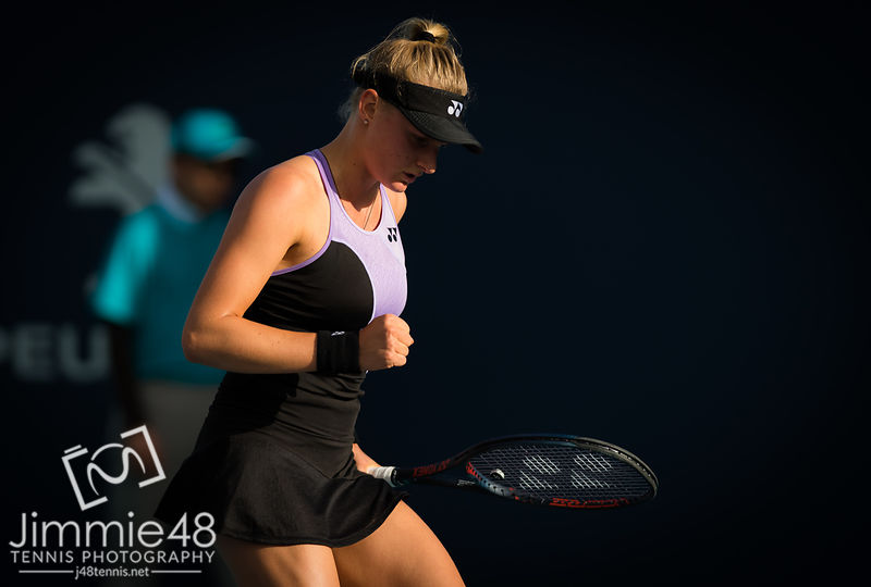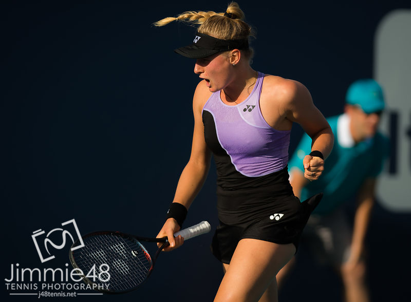 Dayana Yastremska of the Ukraine in action during her second-round match at the 2019 Miami Open WTA Premier Mandatory tennis tournament