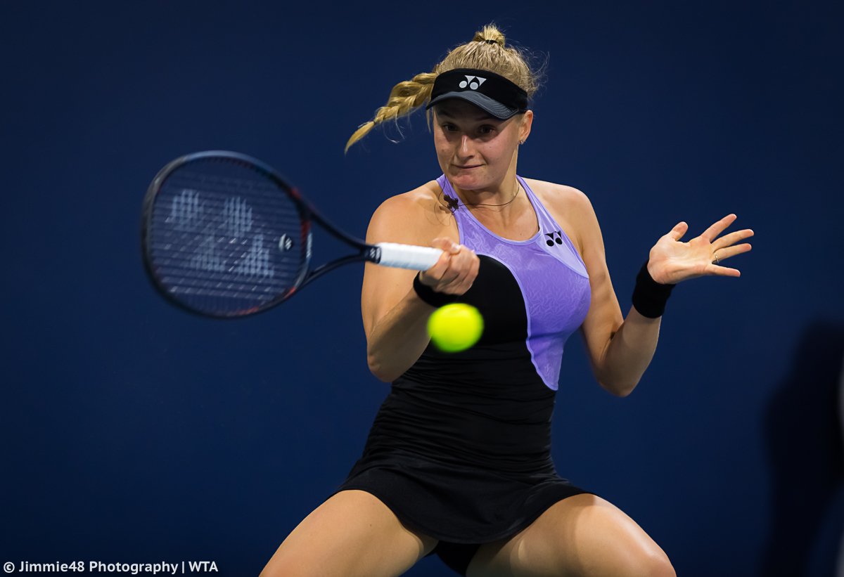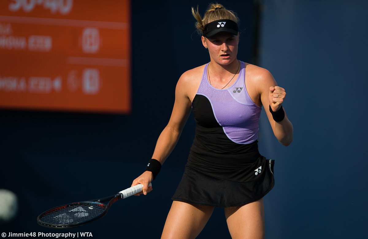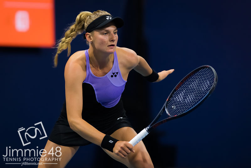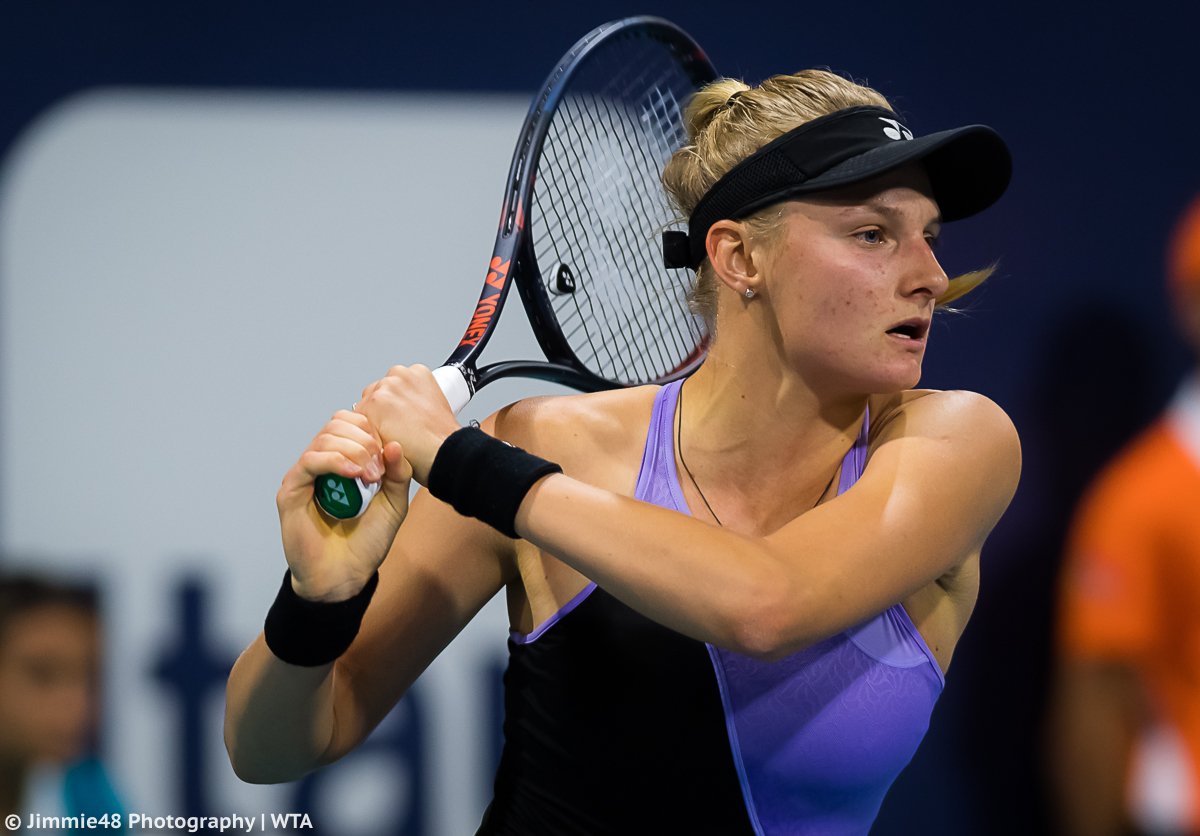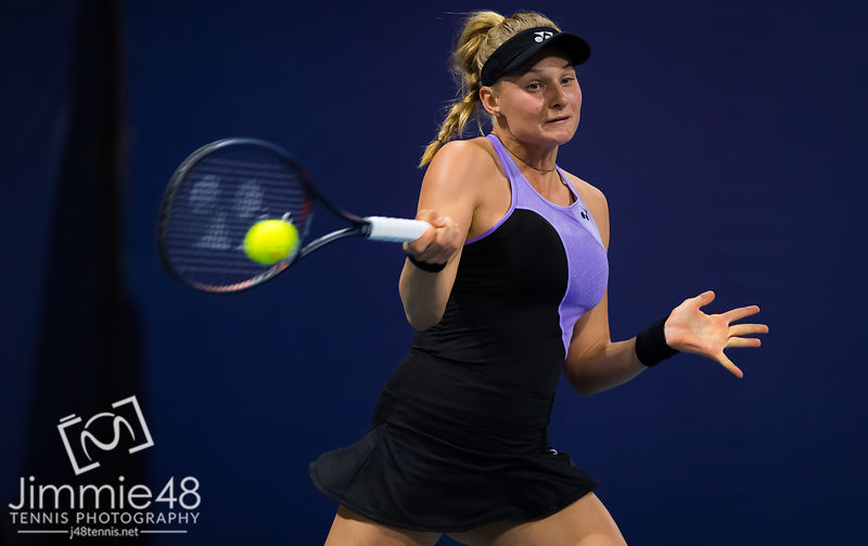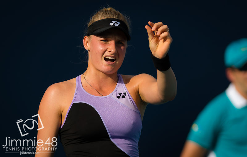 Dayana Yastremska of the Ukraine in action during her second-round match at the 2019 Miami Open WTA Premier Mandatory tennis tournament