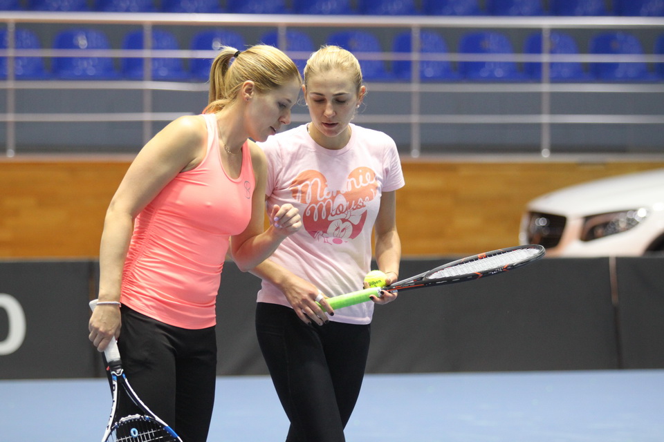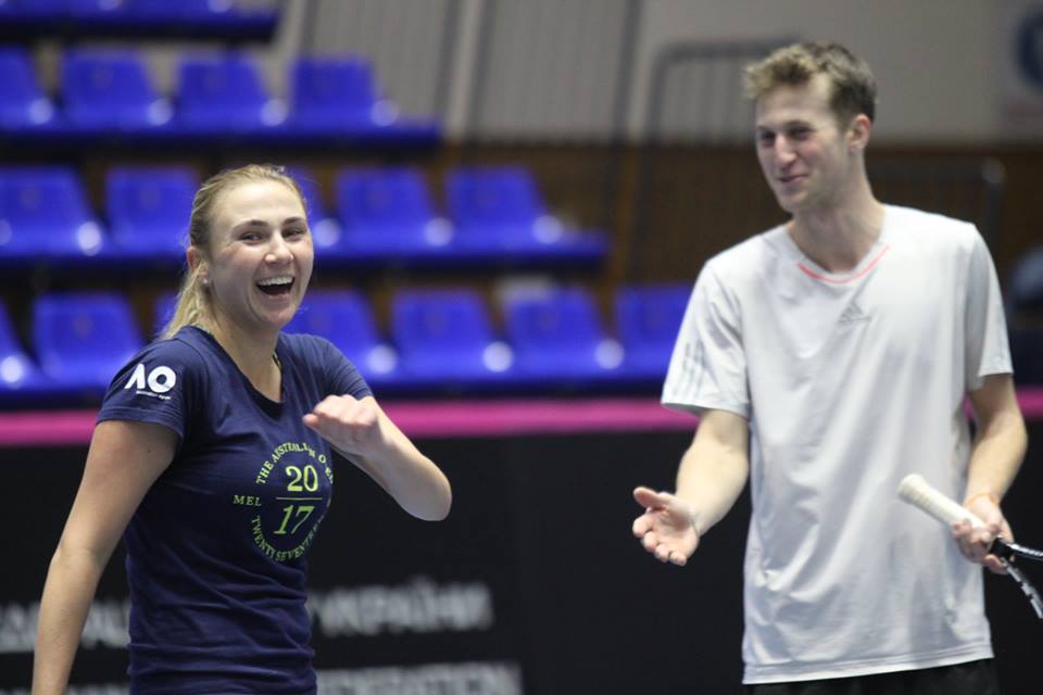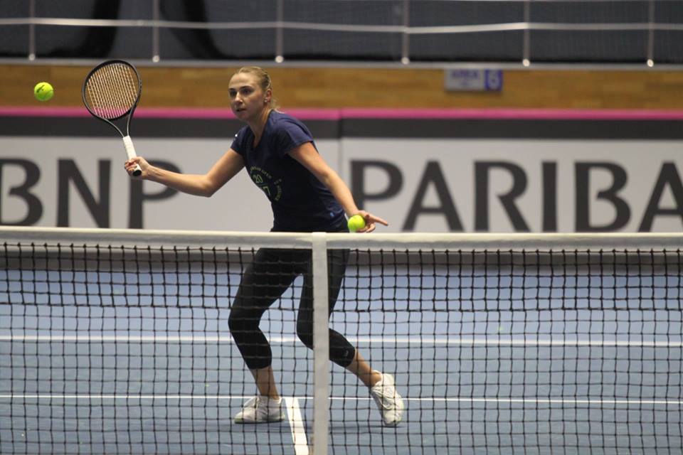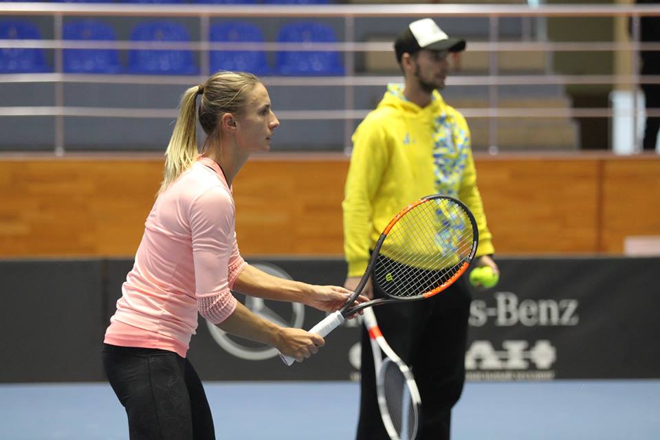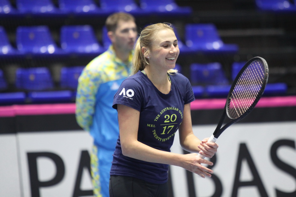 В тренировке принимали участие Леся Цуренко, Ольга Савчук, Людмила и Надежда Киченок. Элина Свитолина присутпит к тренировкам завтра.