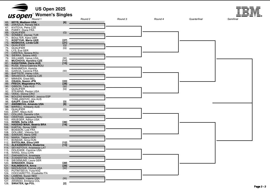 Чотири представниці України – Еліна Світоліна, Марта Костюк, Даяна Ястремська та Юлія Стародубцева зіграють в основній сітці US Open.