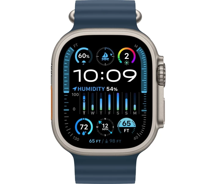 Задня кришка — зазвичай кераміка або композит (для датчиків), екран захищений сапфіровим склом, а ремінці можуть бути будь-якими: титанові браслети, тканинні, силіконові тощо. Саме титан відрізняє Ultra 2 від звичайних моделей (де в якості покриття – алюміній або нержавіюча сталь) — він робить цю модель найміцнішою та найдовговічнішою в усій лінійці Apple Watch.